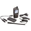 - Литий-ионной аккумуляторной батареей, зарядным устройством 110V и 12VDC, отсеком для щелочных батарей, антенной, клипсой, адаптером для подключения гарнитуры и USB программатором.
